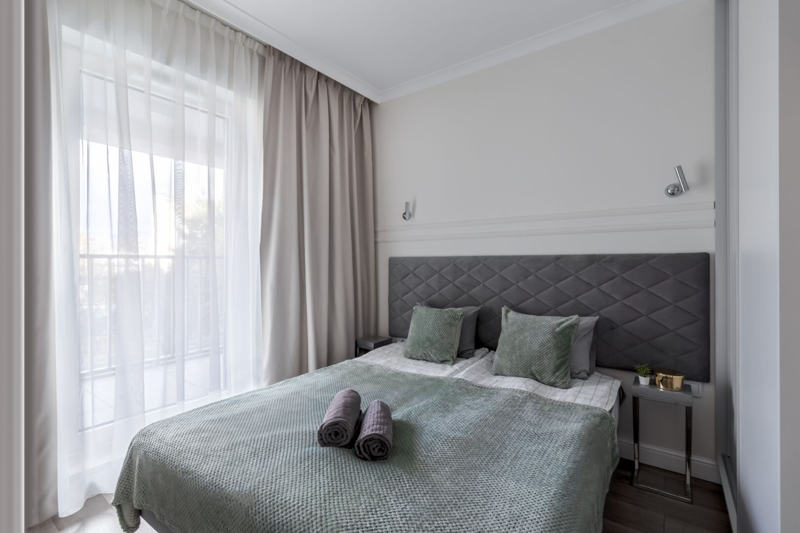 Elegant one-bedroom apartment in Warsaw’s Wola district – balcony with city view, garage parking, free Wi-Fi and air-conditioning.