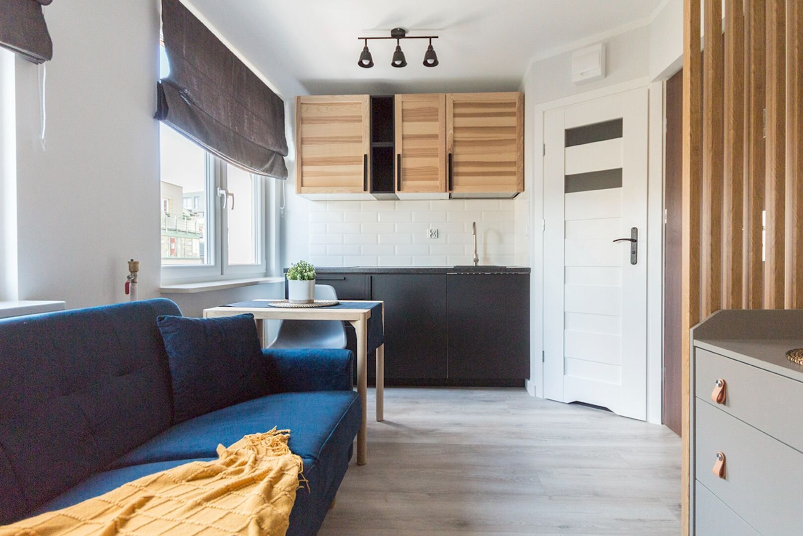 Stylish 47 m² studio in a prime Warsaw location – 45A Wronia Street. Fully equipped and perfect for up to 4 guests.