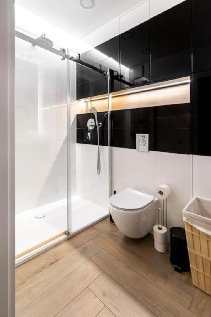 Stylowy, nowoczesny apartament w centrum Warszawy (Pereca 11) z opcją śniadania w pobliskiej restauracji oraz prywatnym parkingiem w budynku — doskonały wybór na podróż służbową lub wypoczynek.