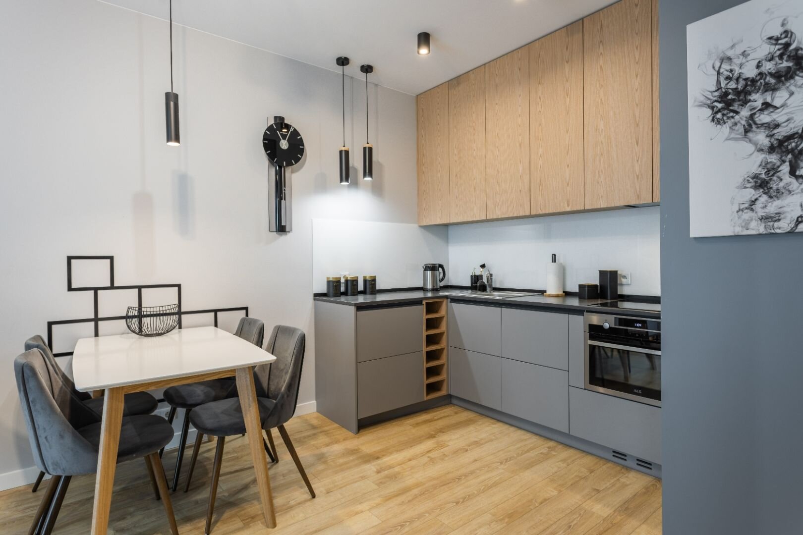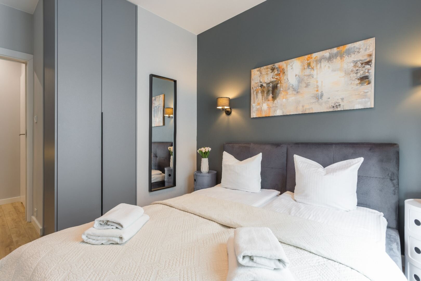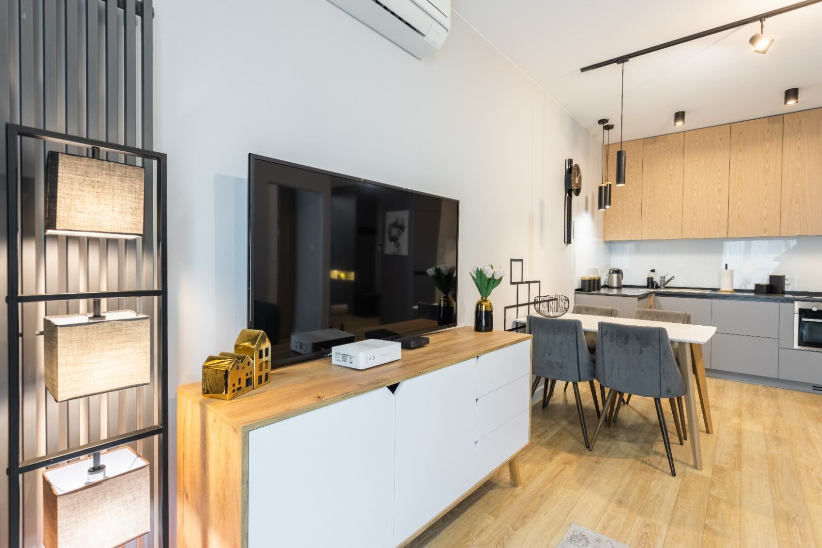 Nowoczesny apartament z jedną sypialnią w sercu Warszawy. Luksusowe wnętrze i pełne wyposażenie. Doskonała lokalizacja do zwiedzania miasta.