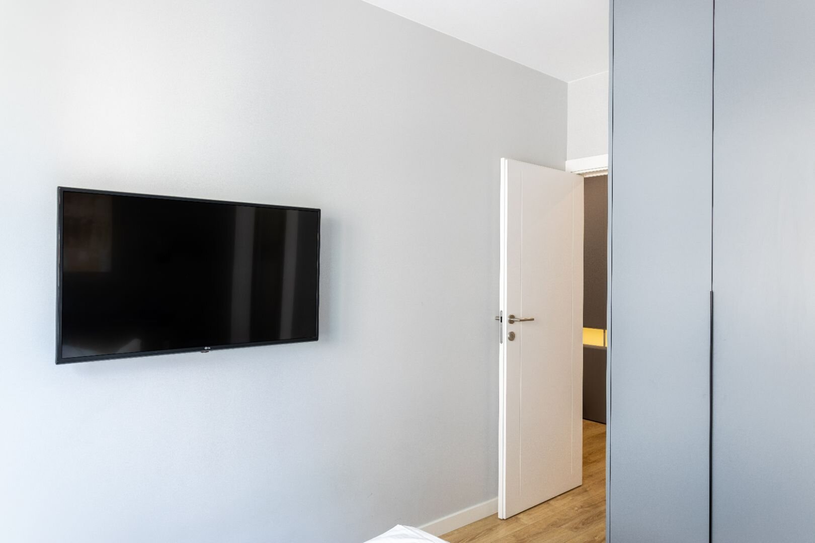 Mieszkanie składa się z dwóch przytulnych sypialni, jasnego salonu z wyjściem na balkon i w pełni wyposażonej kuchni (zmywarka, piekarnik, lodówka). W apartamencie dostępna jest klimatyzacja, pralka oraz bezpłatne Wi-Fi. Apartament znajduje się w budynku z windą i oferuje możliwość parkowania na miejscu (prywatny parking dostępny na życzenie) – co w centrum miasta stanowi duży plus.